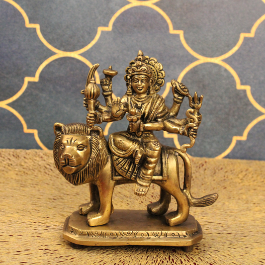 Sherawali Mata Brass Idol – Antique Finish | Divine Strength & Protection