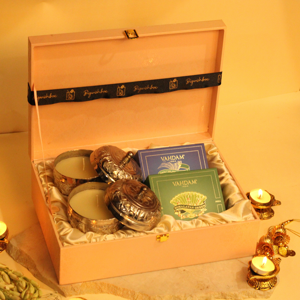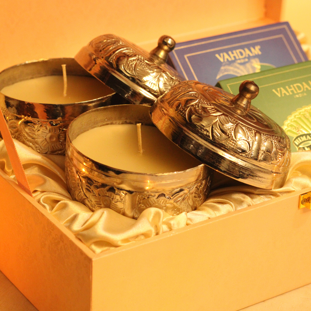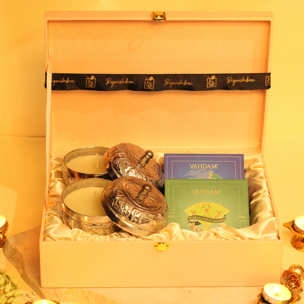 2 x Bigwishbox Silver Plated Noor Bahaar Jasmine Candles with Lid (Burn Time: 20 hours each) – Hand-poured and infused with the calming fragrance of jasmine, these candles bring a serene glow to any space.