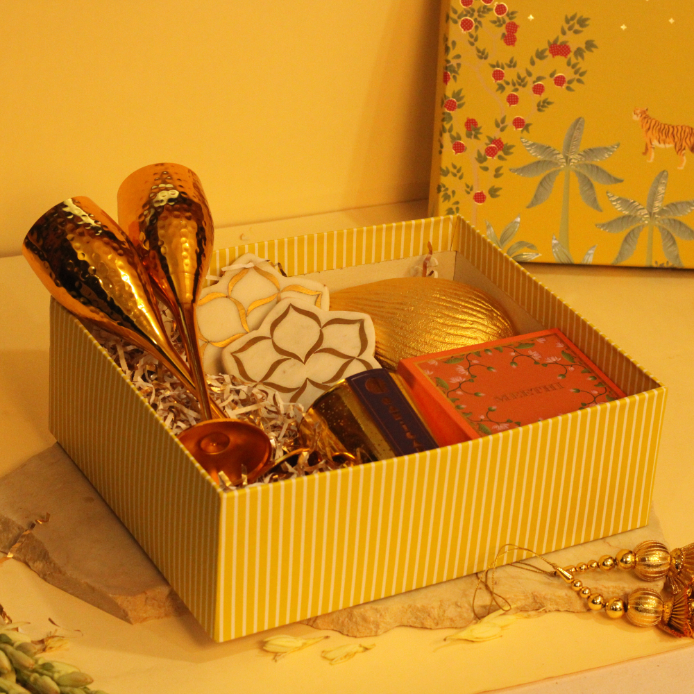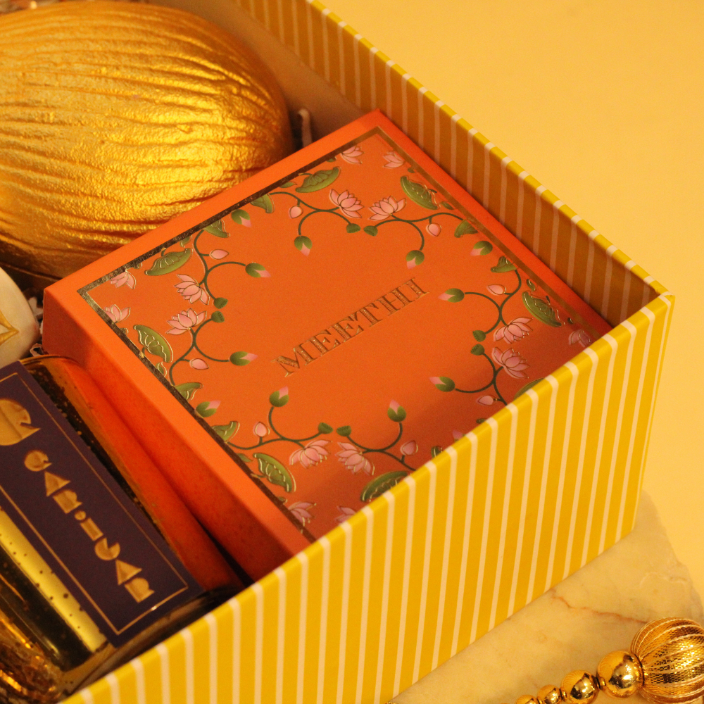An opulent curation that beautifully blends tradition with modern elegance, this luxury hamper is designed to impress and celebrate in style. Thoughtfully packed in a premium rigid box, it includes: