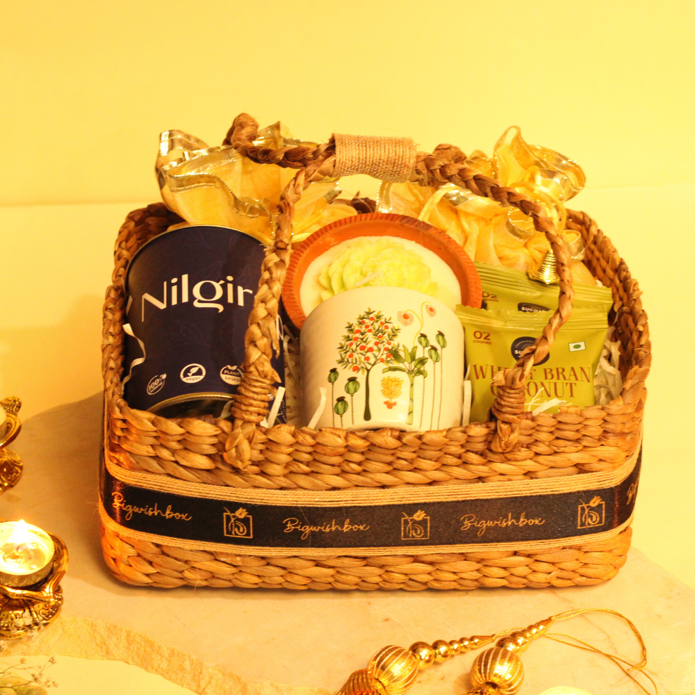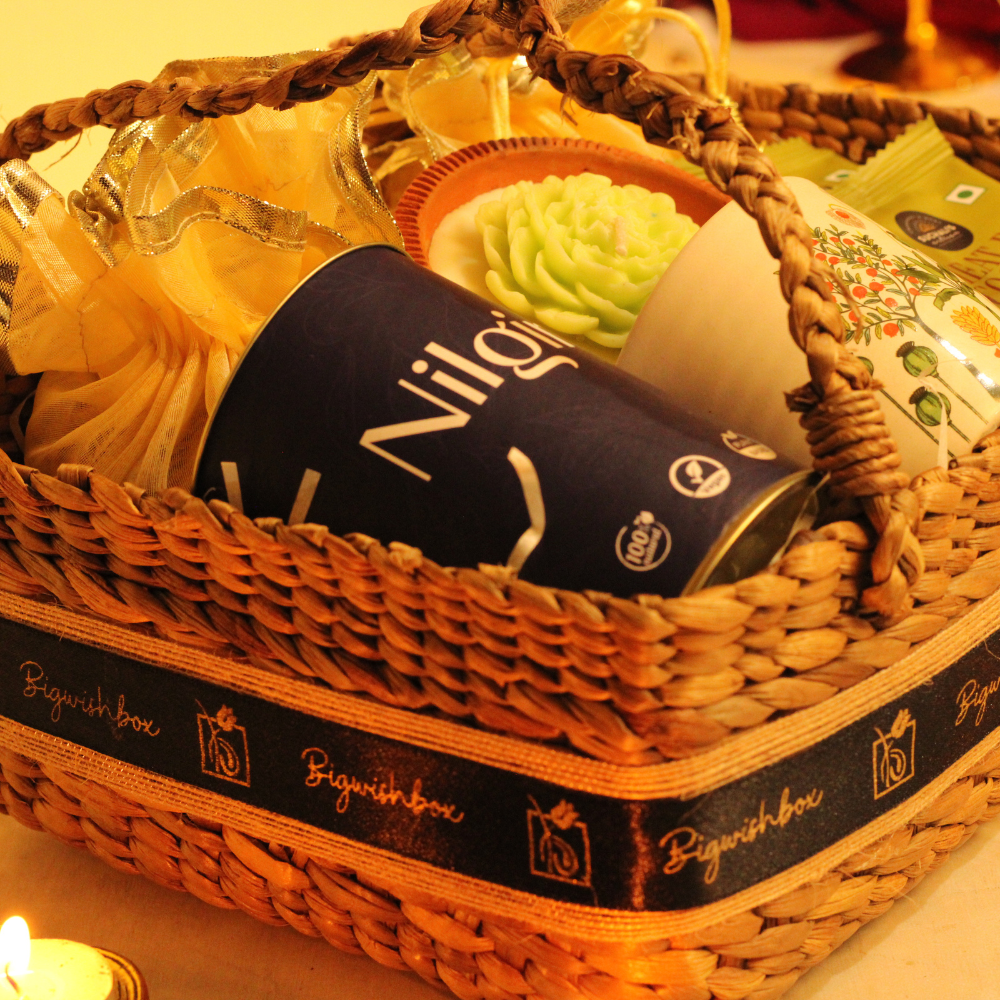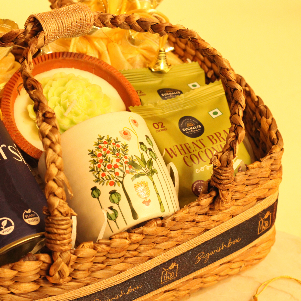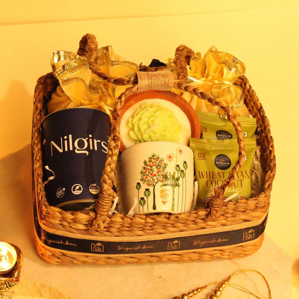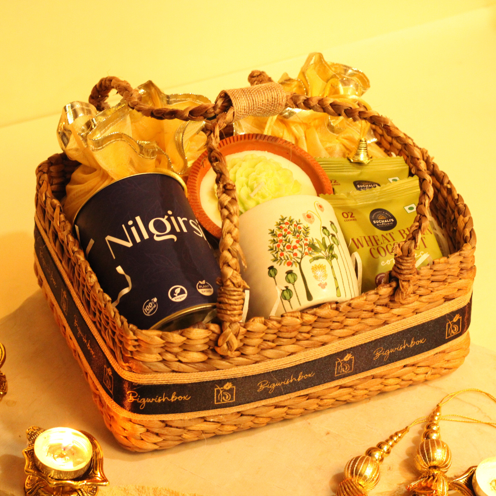 Perfect for festive gifting, corporate occasions, or personal celebrations, this hamper combines wellness, tradition, and thoughtful design in one beautiful basket.