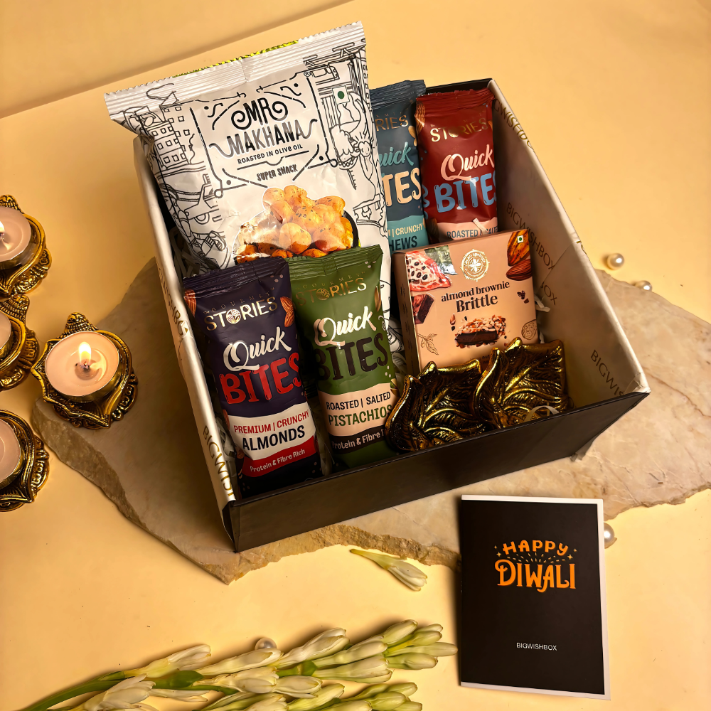A perfect blend of taste and health, this Zaika is curated to add crunch, flavor, and joy to every celebration. Thoughtfully packed with premium snacks and a festive touch, it’s ideal for corporate gifting, family celebrations, or sending love across miles.