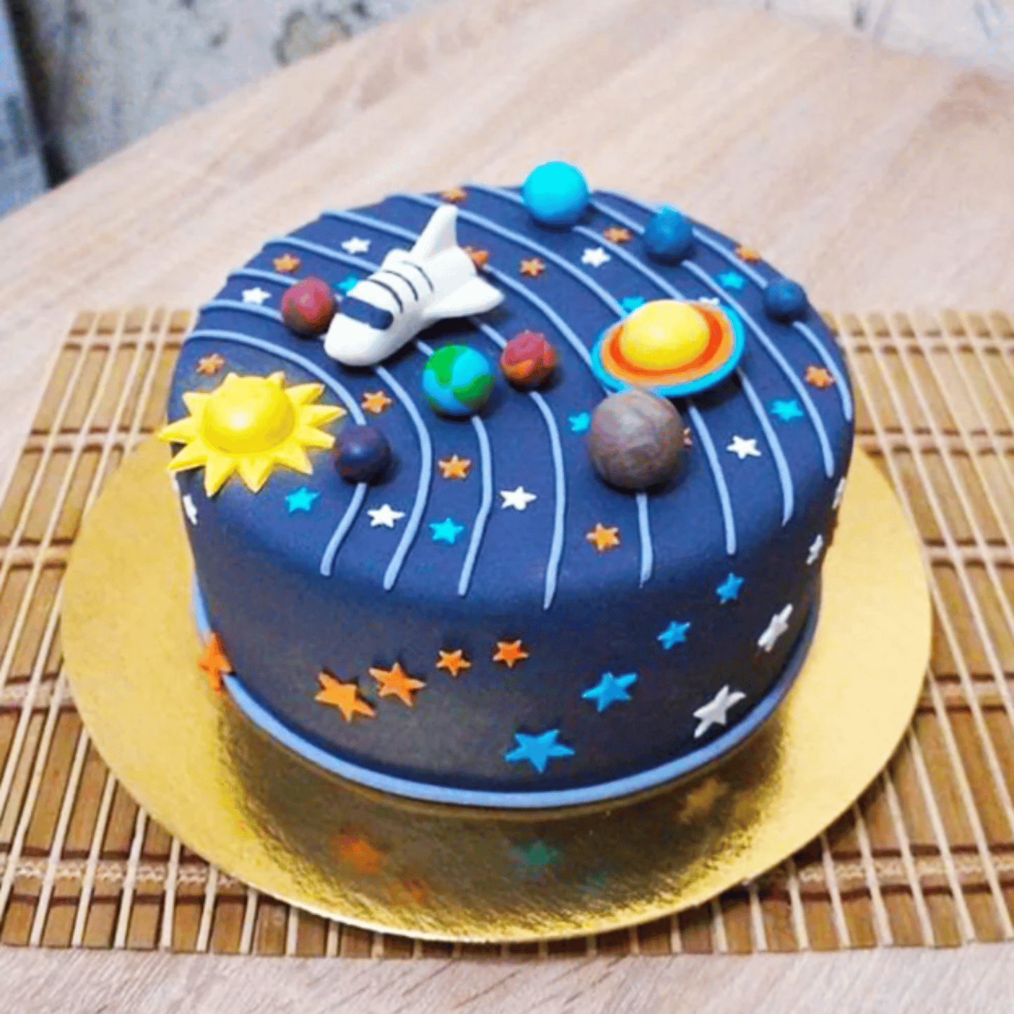 Prepare to be mesmerized as you gaze upon the celestial beauty of this cake. Our talented pastry chefs have handcrafted a breathtaking design, featuring galaxies, stars, and cosmic elements that adorn the smooth fondant surface. Each intricate detail is meticulously crafted to create a cake that is truly out of this world.