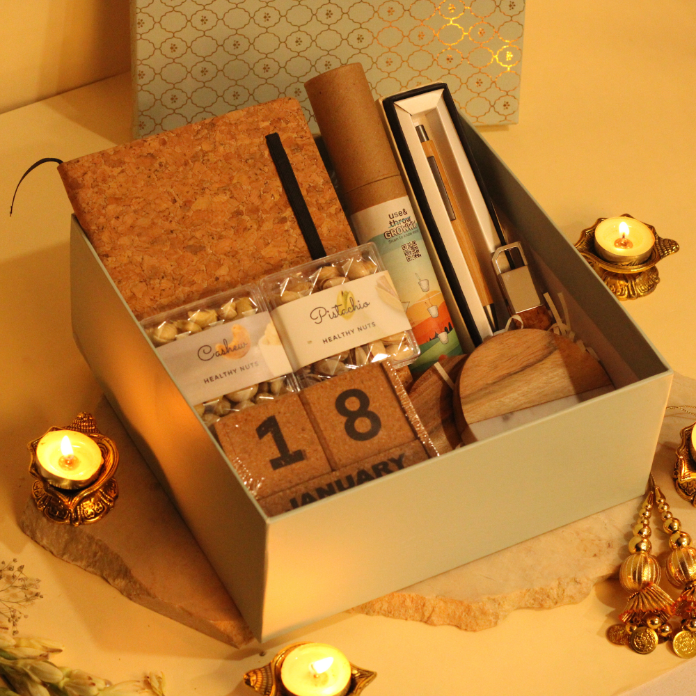 Perfect for corporate gifting, eco-friendly celebrations, and festive occasions, this hamper combines practicality, sustainability, and luxury in one.