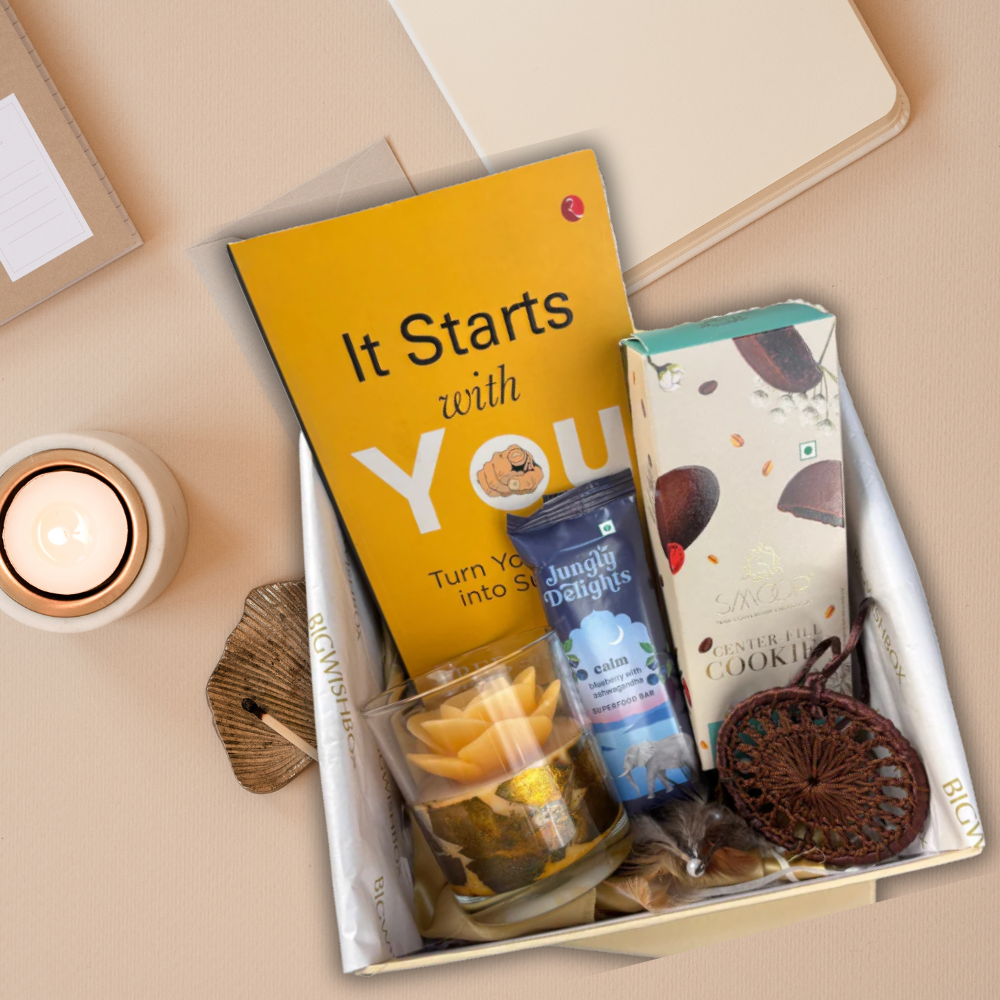 Celebrate self-growth and sweet moments with the Begin Within Gift Box — a calming and empowering curation designed to uplift, inspire, and delight.