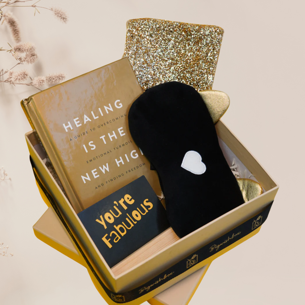 Pack of 4 Items: Includes Wellness Book, Utility Pouch, Eye Mask, You’re Fabulous Table Top, and Message Card.