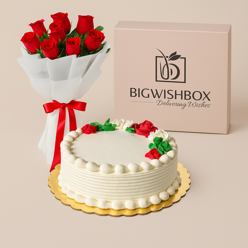 Surprise your loved ones with a timeless gift of romance and sweetness. This combo features a fresh hand-tied bunch of 8 red roses paired with a soft and fluffy half-kg vanilla cake. Perfect for birthdays, anniversaries, Valentine’s Day, or “just because” moments, it expresses love and appreciation in one thoughtful gesture.