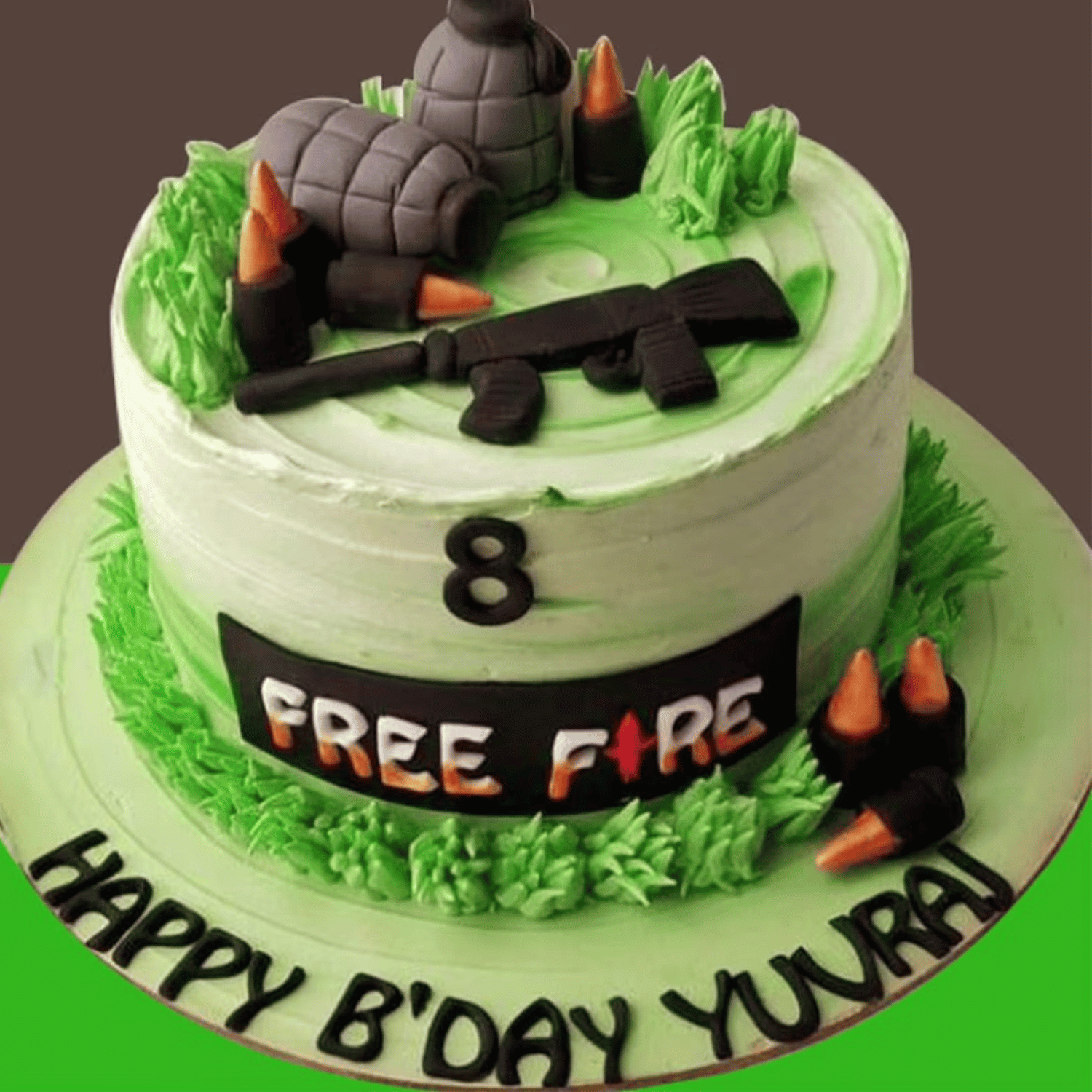 Prepare for an action-packed experience with our sensational Free Fire Fondant Cake! This delectable cake can be customized to your preferred flavor and is available in size of 3kg, making it an ideal choice for gaming parties or any special event. However, the true excitement lies in its fondant decorations, which showcase bombs, bullets, and guns inspired by the renowned game. Enhance your celebrations with this creatively designed cake and immerse yourself in the gaming frenzy—just remember not to become too engrossed in its mouthwatering taste!