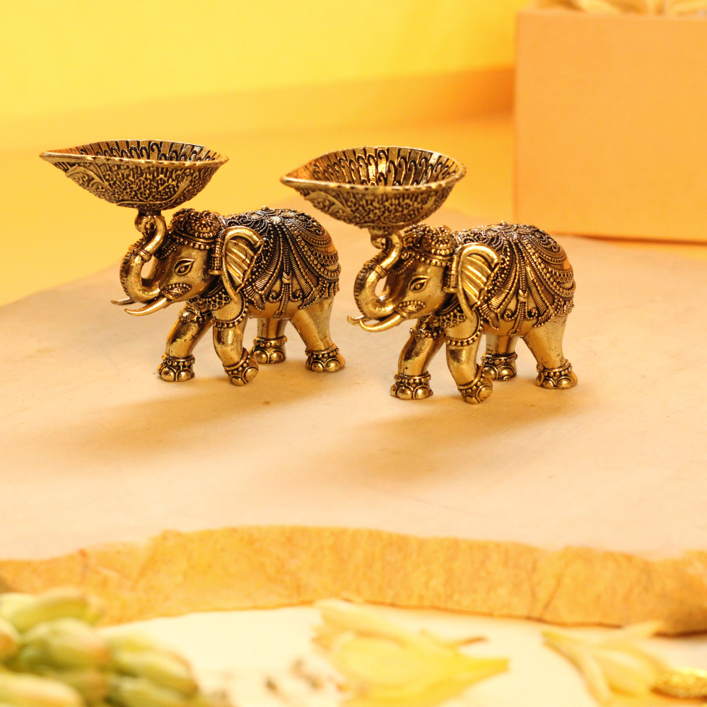 Brass Elephant Oil Lamp (Set of 2) – A symbol of prosperity and tradition, perfect for festive décor.