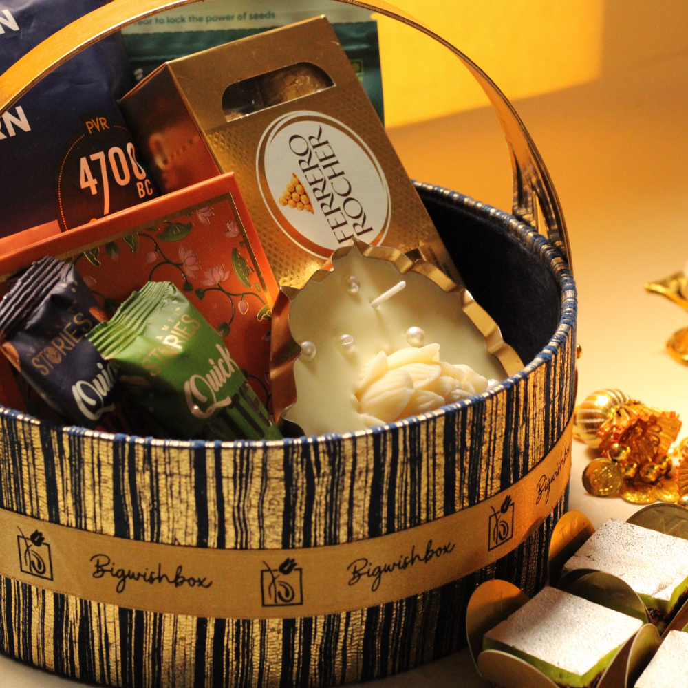 ✨ Perfect for Diwali, corporate gifting, or personal celebrations – this basket combines premium taste with traditional charm.