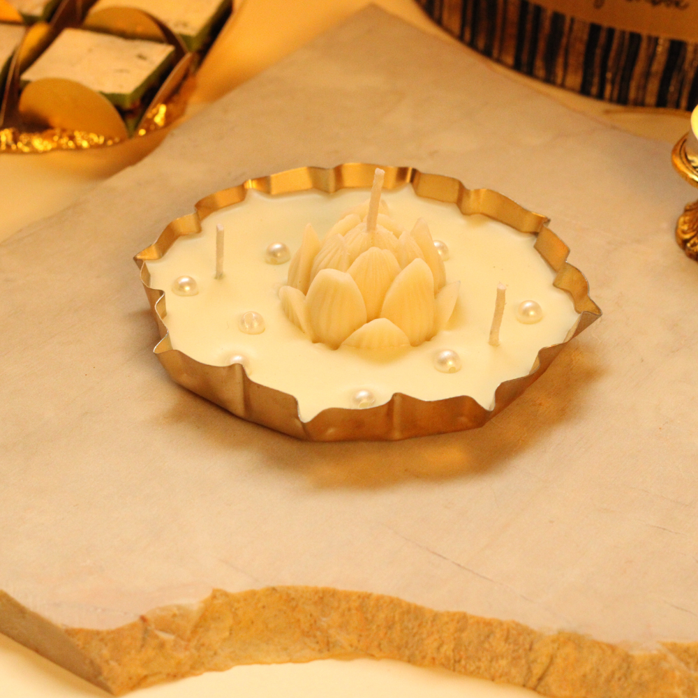 Urli Scented Candle with Pearls – A decorative candle that adds fragrance and elegance to the celebrations.