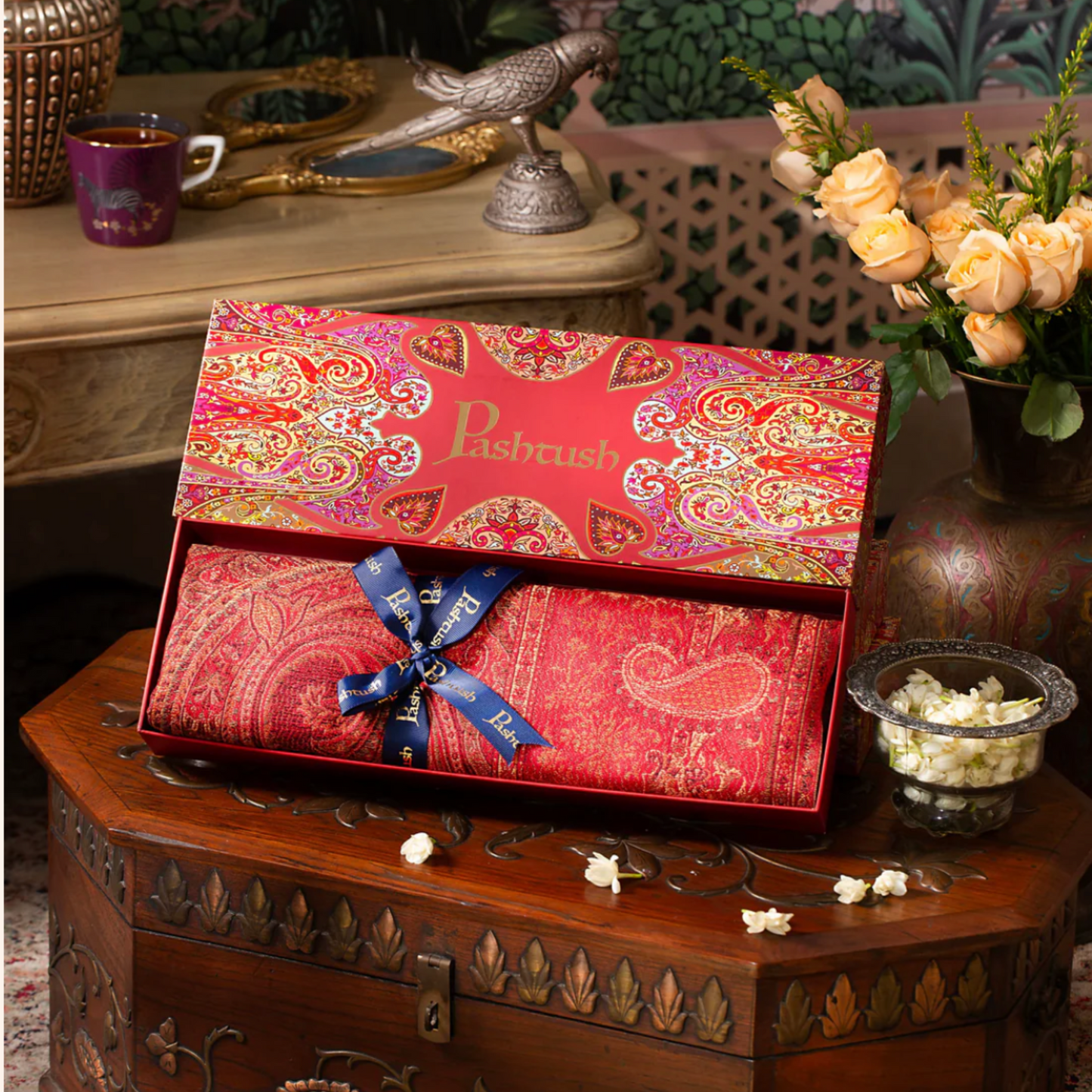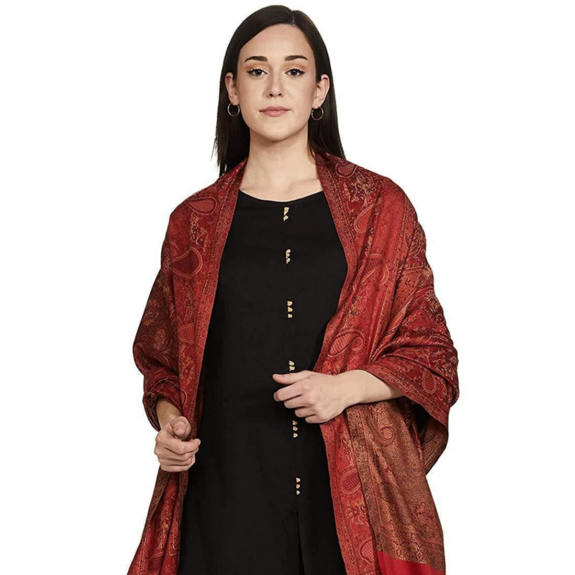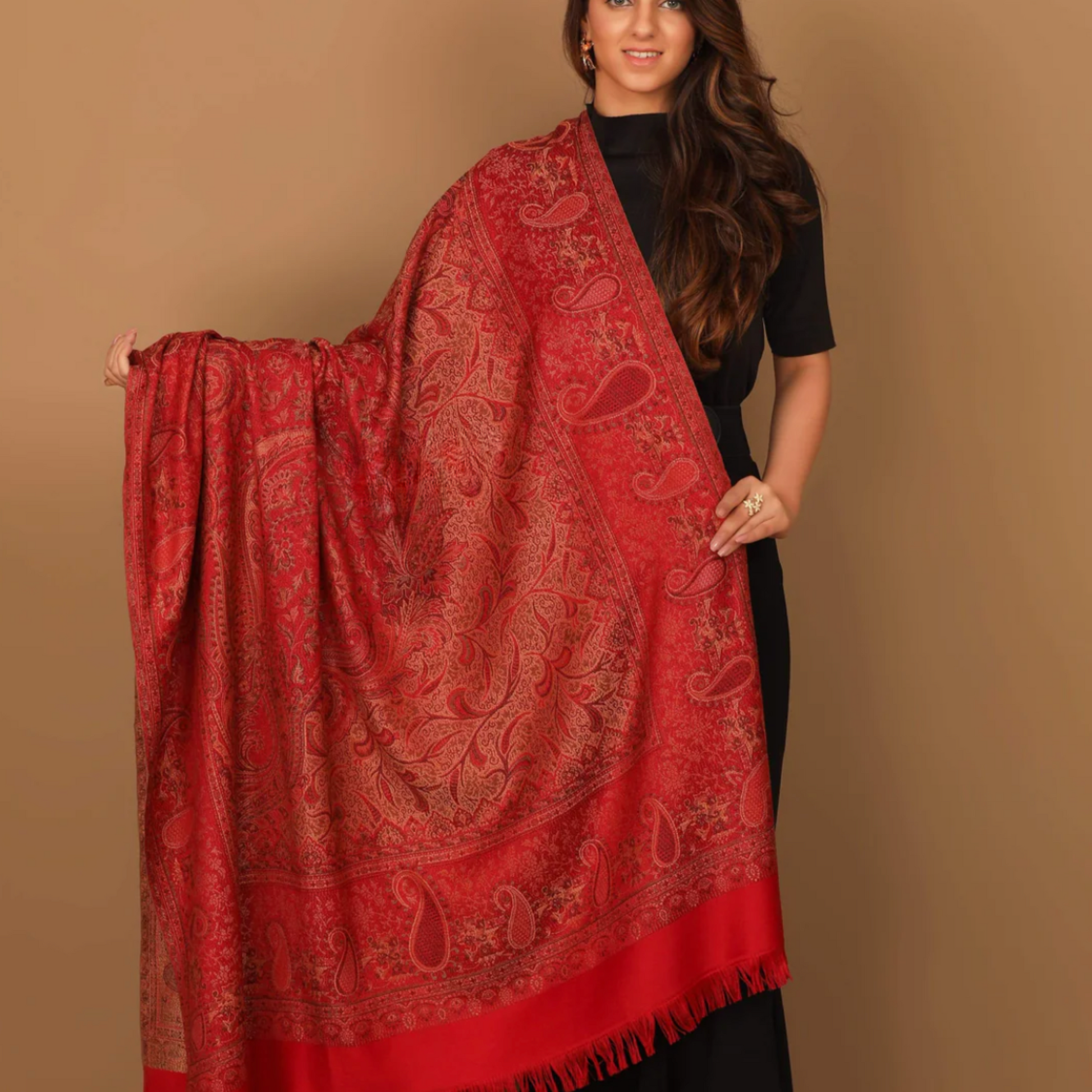 Elevate your winter style with the luxurious Pashtush Faux Pashmina Shawl, featuring a rich maroon Jamawar fabric. Meticulously crafted for premium quality and timeless elegance, this shawl is the perfect blend of sophistication and warmth, ideal for any occasion.