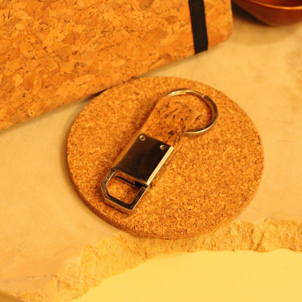 Cork Base Black Metal Keychain (4" x 1") (Customisable with Branding)